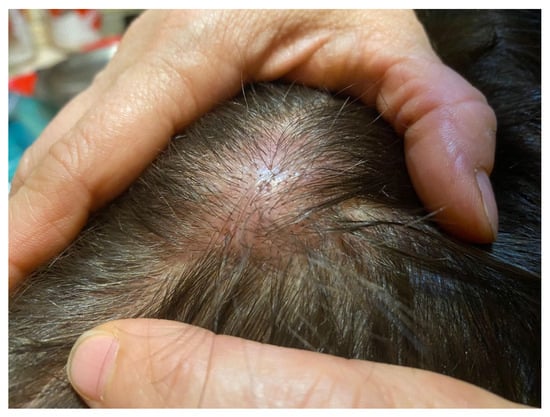 Cutaneous lesions on the scalp.