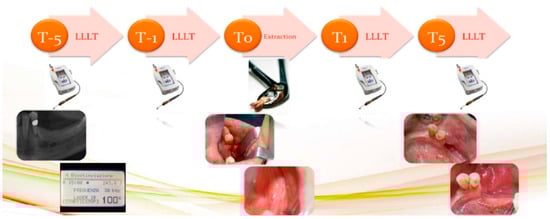 - Vescovi, P.; Meleti, M.; Merigo, E.; Manfredi, M.; Fornaini, C.; Guidotti, R.; Nammour, S. Case series of 589 tooth extractions in patients under bisphosphonates therapy. Proposal of a clinical protocol supported by Nd:YAG low-level laser therapy. Med. Oral Patol. Oral Cirugia Bucal 2013, 18, e680–e685. [Google Scholar] [CrossRef] [PubMed]