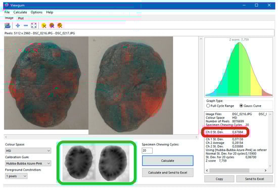 - Silva, L.C.; Nogueira, T.E.; Rios, L.F.; Schimmel, M.; Leles, C.R. Reliability of a two-colour chewing gum test to assess masticatory performance in complete denture wearers. J. Oral Rehabil. 2018, 45, 301–307. [Google Scholar] [CrossRef]