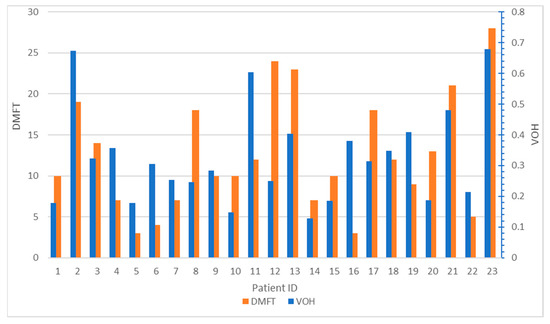 | DMFT | 12.5 ± 7.1 (3–28) | 15.0 ± 7.1 (3–28) | 9.8 ± 7.7 (4–23) | 8.6 ± 3.7 (3–13) | 0.143 |