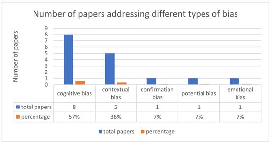 The USA and Australia produce most articles about prejudice, with other papers coming from the UK, the Netherlands, and New Zealand as seen in Figure 2. Of the 14 research papers, 4 discuss various approaches to eliminating bias, while 13 argue that a certain methodology or method should be used, and that more research in this area should be conducted. Out of 14 articles 5 were experimental studies 7 were review articles 1 is a systematic study and 2 are the survey and a few papers suggest that a recognized system for validation or revalidation of bitemarks should be introduced []. Many factors are taken into consideration before making an analysis and arriving at a decision. These may include DNA evidence, the context of the crime scene, or the timing of the injury and identification of the perpetrator. The importance of bitemark evidence in court cannot be overlooked. In 2019, three papers were published in the USA highlighting the issue of bias in bitemark analysis. This was brought to light by The Innocence Project, which exposed the wrongful conviction of Roy Brown in a case that garnered a lot of attention. The project also revealed the truth about many other cases that were affected by biased decisions during bitemark analysis []. The year 2022 produced two articles, one from the USA and the other from the Netherlands. The scientific basis and dependability of this forensic human approach are seriously questioned when bias is examined in human bitemark analysis. In order to establish a relationship between the two people involved in a bite, bitemark analysis includes a comparison of the markings on the skin of a biting victim with the teeth of a suspected biter. However, several studies and reviews have cast doubt on the reliability and accuracy of the bitemark analysis, raising the possibility of biased judgments in court cases. Bitemark evidence has been used in several high-profile cases to support incorrect convictions, raising more concerns about the validity of this forensic method. DNA exonerations have highlighted the limitations of bitemark analysis, underscoring the necessity for a careful evaluation of its scientific foundation and the dangers of biased judgment [].