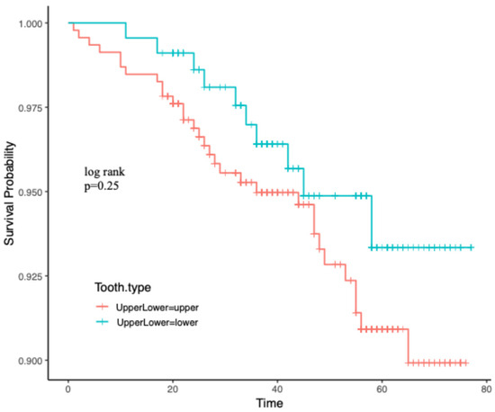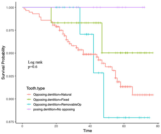 Kaplan–Meier survival curve comparing opposing dentitions.