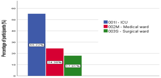 When considering each work setting separately, 55.22% of the participants from intensive care units, 24.38% of the participants from medical wards, and 17.91% of the participants from surgical wards mentioned that they provided oral hygiene care in their respective units (Figure 2).