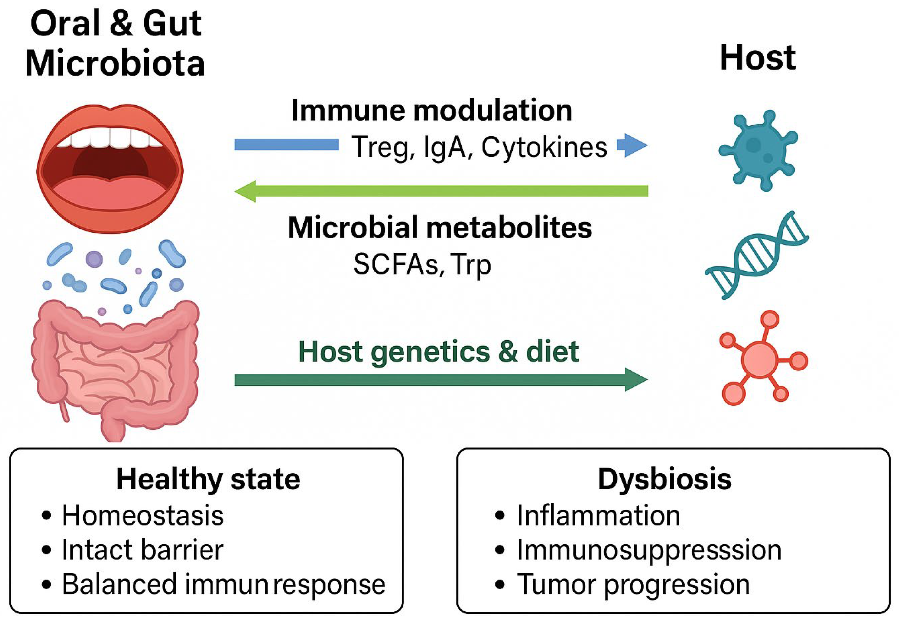 - Liu, Q.; Yang, Y.; Pan, M.; Yang, F.; Yu, Y.; Qian, Z. Role of the gut microbiota in tumorigenesis and treatment. Theranostics 2024, 14, 2304–2328. [Google Scholar] [CrossRef]