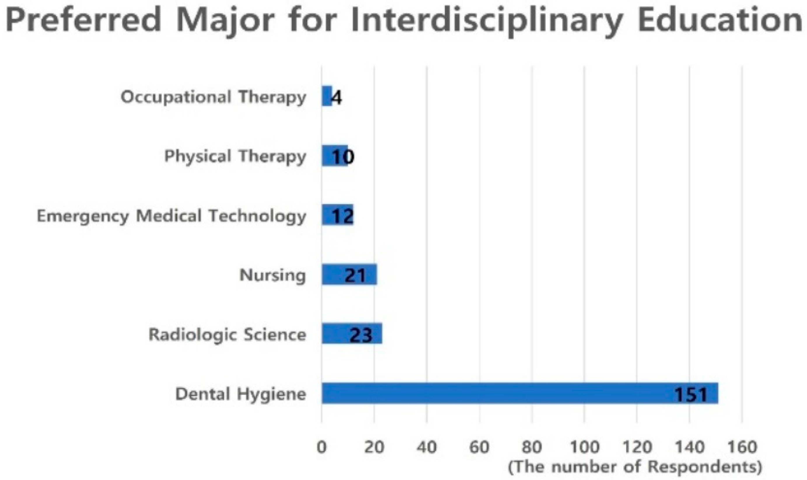 If interdisciplinary education was implemented in the dental technology curriculum, which academic fields would you prefer it to integrate with? (Multiple responses allowed.) | Nursing | 21 | 10.7 |