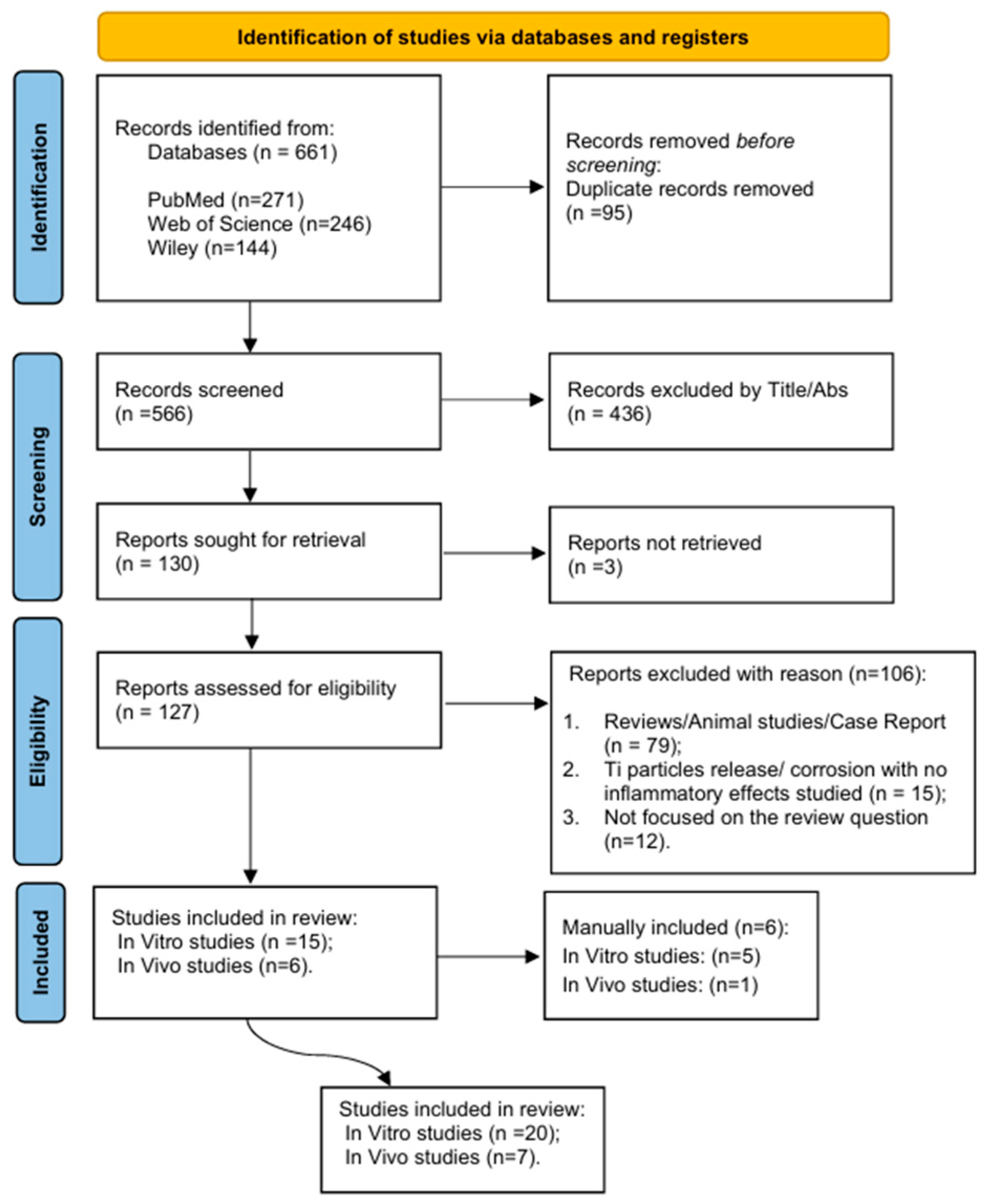 Furlanetto M, Castro R, Silva F, Pereira J, Macedo J, Soares S. Titanium Particle Impact on Immune Cells, Cytokines, and Inflammasomes: Helping to Profile Peri-Implantitis—A Systematic Review. Oral. 2025; 5(4):80. https://doi.org/10.3390/oral5040080