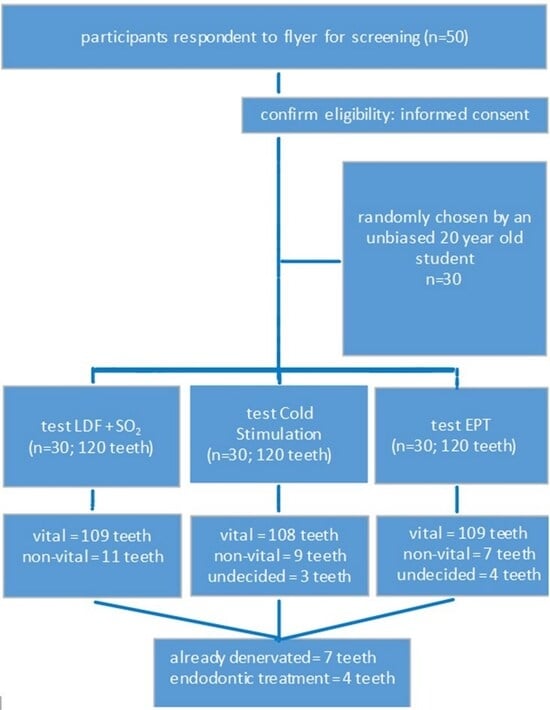 - Hartmann, A.; Azérad, J.; Boucher, Y. Environmental effects on laser Doppler pulpal blood-flow measurements in man. Arch. Oral Biol. 1996, 41, 333–339. [Google Scholar] [CrossRef]