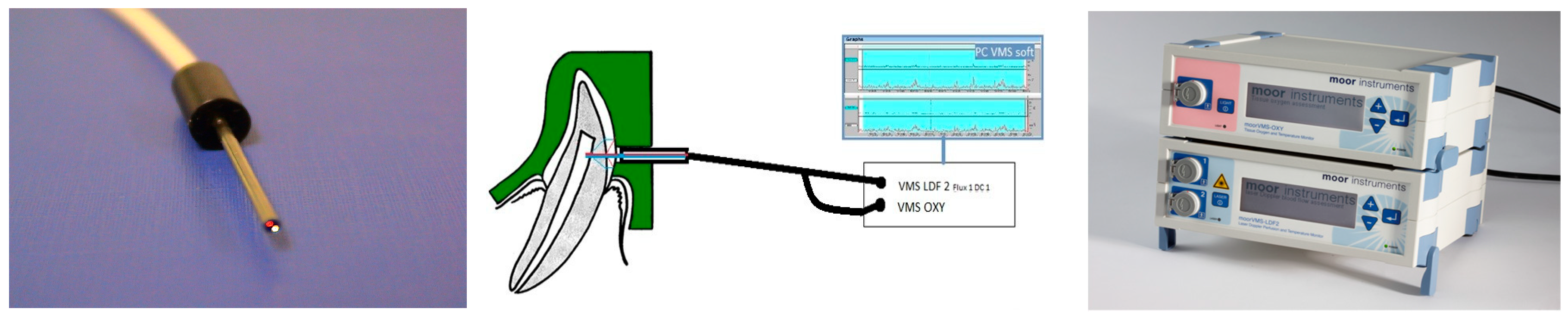 - Roeykens, H.J.; Deschepper, E.; De Moor, R.J. Laser Doppler flowmetry: Reproducibility, reliability, and diurnal blood flow variations. Lasers Med. Sci. 2016, 31, 1083–1092. [Google Scholar] [CrossRef] [PubMed]