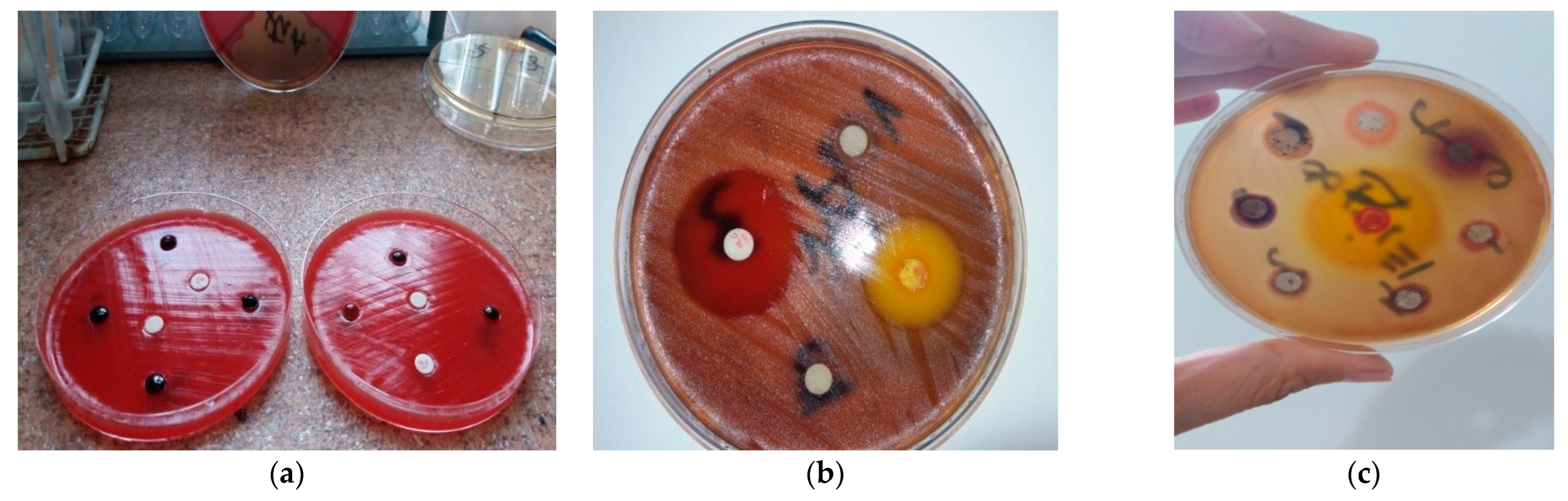 3.2. The IZ Determined by the Kirby–Bauer Method