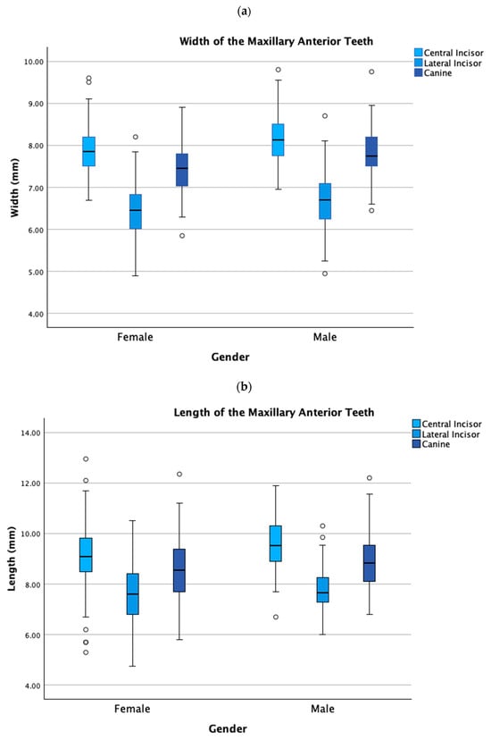 (a) Width of the maxillary anterior teeth. (b) Length of the maxillary anterior teeth.