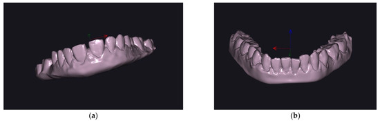 (a) Insertion axis selection for the maxillary arch. (b) Insertion axis selection for the mandibular arch.