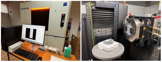 For the imaging analysis of the samples, a Zeiss Metrotom 1 micro-CT system (Carl Zeiss Industrielle Messtechnik GmbH, Oberkochen, Germany) was used. The samples were analyzed using the following parameter set: maximum voltage of 150 kV, power of 50 W, exposure time of 500 ms, and a resolution of 3008 × 2512 pixels (Figure 9).