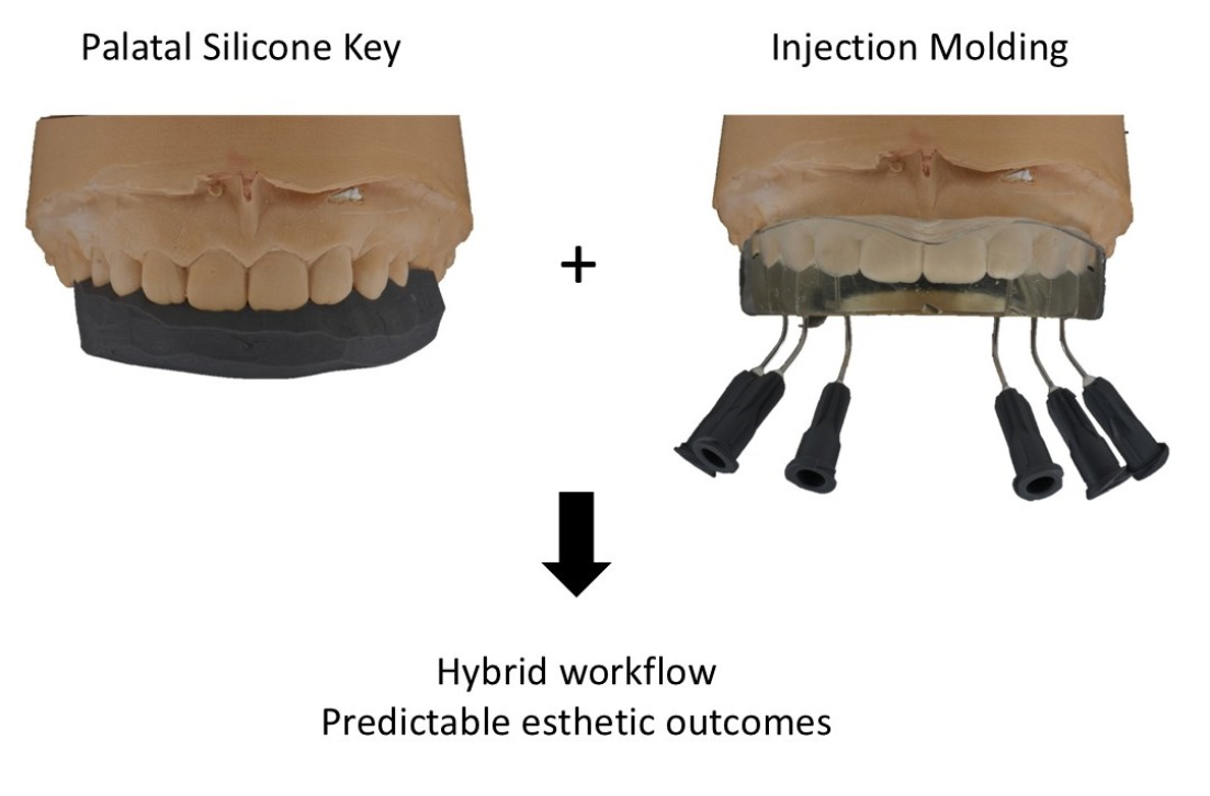 The Palatal Silicone Key technique is a well-established alternative to fully free-hand procedures, offering partial guidance to the clinician through the intraoral transfer of palatal and incisal anatomy using a silicone index based on the diagnostic wax-up [