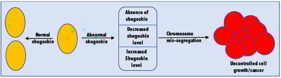 Being an important player in the cell cycle, cells ensure that shugoshin is present only when and where needed [44]. Cells also maintain an optimum level of shugoshin by regulating its expression and degradation through APC/C (anaphase promoting complex/cyclosome) [45]. A complete absence or altered level (both more and less than the optimum level) of shugoshin may lead to tumorigenesis. Plenty of studies are now available supporting both the oncogenic as well as tumor suppressor nature of shugoshin. Therefore, it would be fair enough to consider shugoshin a tumor-associated gene (Figure 2). The cellular abundance of shugoshin is so critical that even one fold change in its cellular abundance is enough for tumor induction [46]. The role of shugoshin in cancer is confirmed not only from studies in non-human subjects like rats or mice but also from tissue samples collected from actual human cancer patients. In this section of the review, we highlight some of the recent studies in which the complete absence or altered level of shugoshin was linked to cancer.