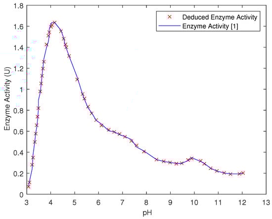 The ANFIS SISO model for the pH–enzyme activity is trained to capture the nonlinear relationship between reaction pH and enzyme activity, as shown in Figure 10. The training goal was reached with a mean error of 2.577 × 10.