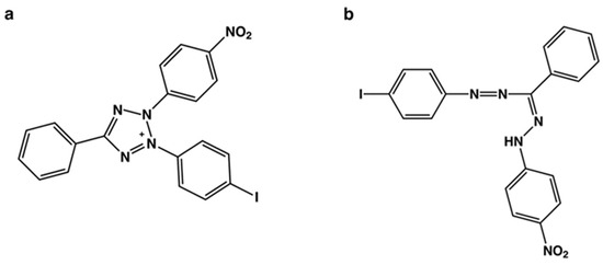 Chemical structures of the oxidized and reduced forms of INT. (a) INT (oxidized form) is a colorimetric reagent that becomes reduced by CkDIA and NADPH to form (b) INT-formazan (reduced form) with strong absorption of visible light at λmax = 505 nm.