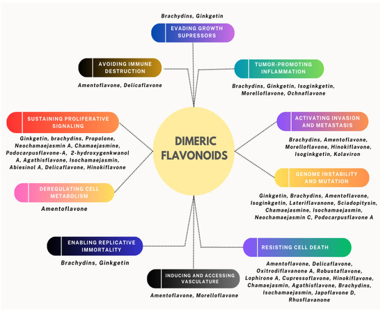 Main hallmarks of cancer targeted by dimeric flavonoids.