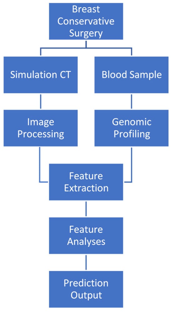- Llorián-Salvador, Ó.; Windeler, N.; Martin, N.; Etzel, L.; Andrade-Navarro, M.A.; Bernhardt, D.; Rost, B.; Borm, K.J.; Combs, S.E.; Duma, M.N.; et al. CT-based radiomics for predicting breast cancer radiotherapy side effects. Sci Rep. 2024, 14, 20051. [Google Scholar] [CrossRef]