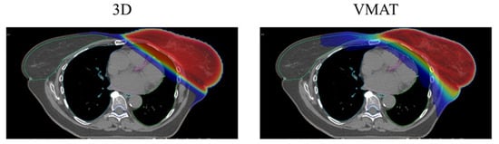 - Donovan, E.; Bleakley, N.; Denholm, E.; Evans, P.; Gothard, L.; Hanson, J.; Peckitt, C.; Reise, S.; Ross, G.; Sharp, G.; et al. Randomised trial of standard 2D radiotherapy (RT) versus intensity modulated radiotherapy (IMRT) in patients prescribed breast radiotherapy. Radiother. Oncol. 2007, 82, 254–264. [Google Scholar] [CrossRef] [PubMed]