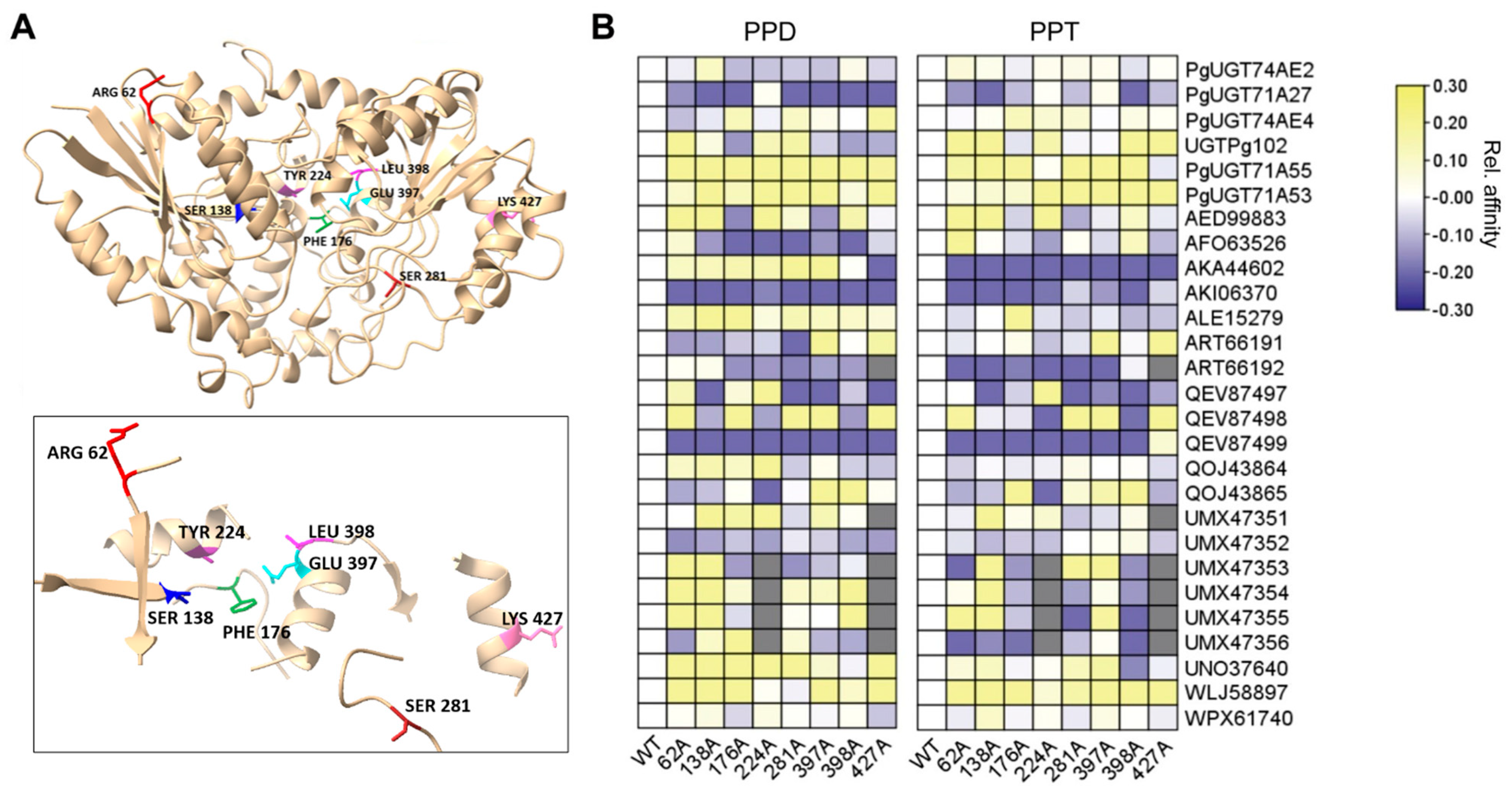 AI-Assisted Identification of the Functional Residues of Ginsenoside Biosynthesis-Associated UGTs