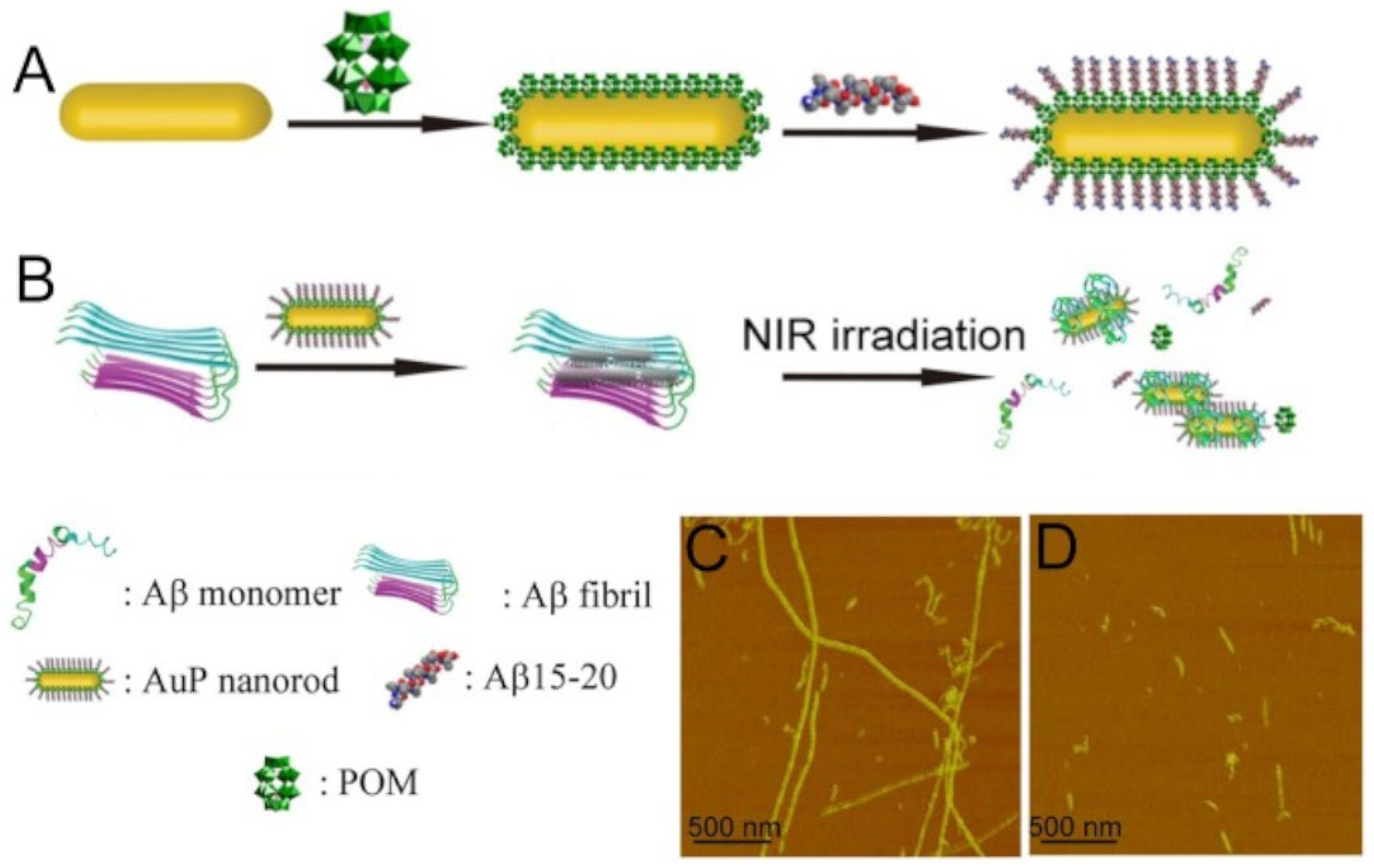 - Ma, M.; Gao, N.; Sun, Y.; Du, X.; Ren, J.; Qu, X. Redox-Activated Near-Infrared-Responsive Polyoxometalates Used for Photothermal Treatment of Alzheimer’s Disease. Adv. Healthc. Mater. 2018, 7, e1800320. [Google Scholar] [CrossRef]