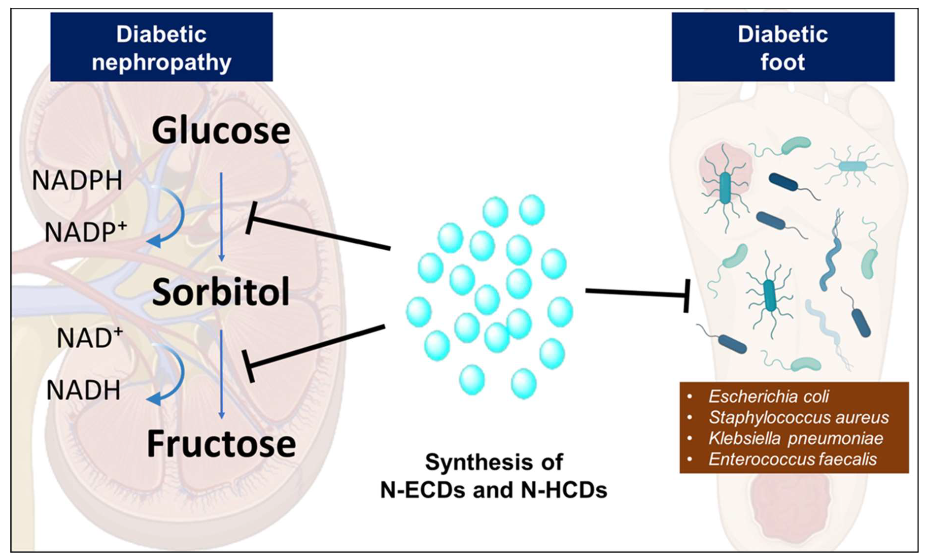 Chicago/Turabian StyleNait Irahal, Imane, Abderrahmane Thoume, Asmaa Chbel, Hicham Wahnou, Fatima Abdou-Allah, Ayoub Lafnoune, Redouane Achagar, Driss Benmessaoud Left, Mustapha Zertoubi, and Noureddine Bourhim. 2026. "Carbon Dot Nanotherapeutics Modulating the Polyol Pathway and Targeting Infection Pathogens Associated with Diabetic Complications" BioChem 6, no. 1: 7. https://doi.org/10.3390/biochem6010007