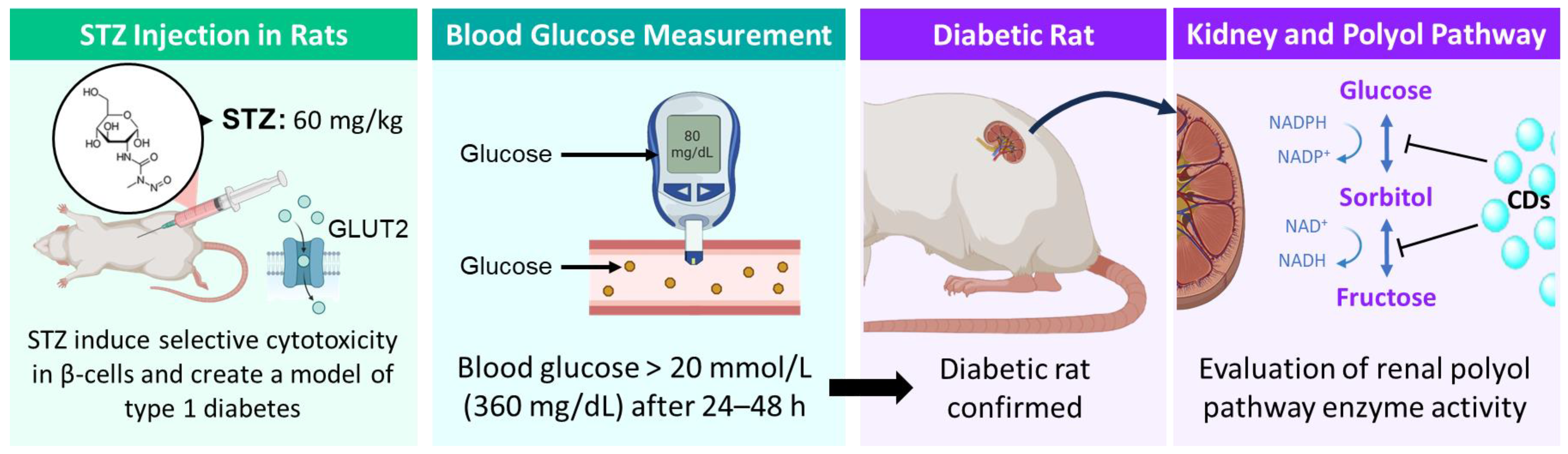 - Camlik, G.; Bilakaya, B.; Küpeli Akkol, E.; Velaro, A.J.; Wasnik, S.; Muhar, A.M.; Degim, I.T.; Sobarzo-Sánchez, E. Oral Active Carbon Quantum Dots for Diabetes. Pharmaceuticals 2024, 17, 1395. [Google Scholar] [CrossRef]