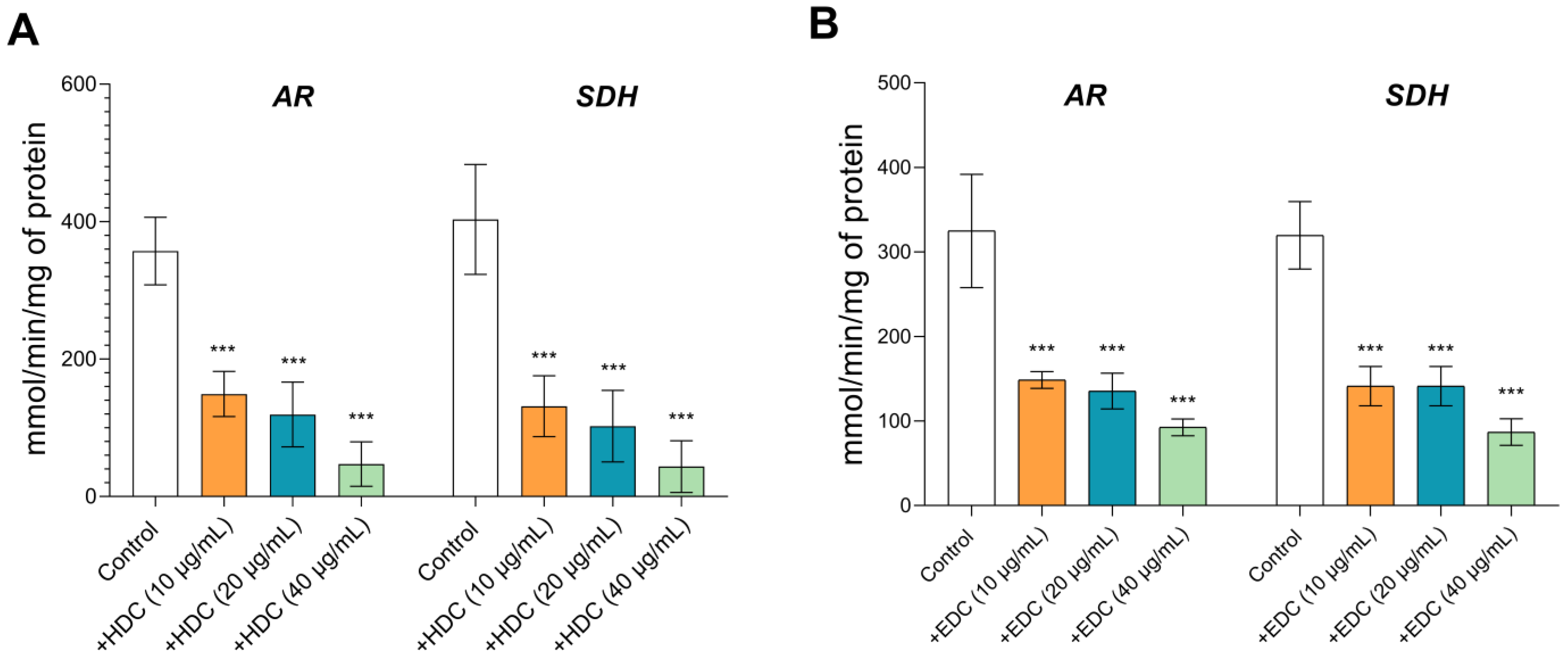 3.3. In Vitro Validation of CDs as Modulators of Polyol Pathway Enzyme Activity