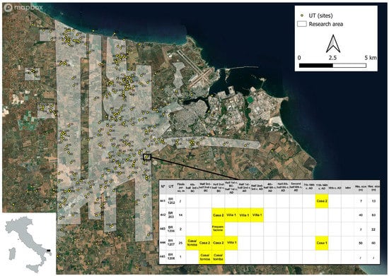 | 19 | Bari, Apulia, Italy | Ricognizioni sistematiche nel territorio di Terlizzi | [117,118,119] | 1350 | n/a | 41 | no |
