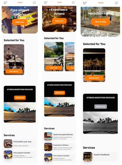 The analysis performed has led to the identification of distinct groups of tools utilized in the global hotel industry. The application developed in this work falls within group 1, titled “Big Data and Customer Experience in the Sharing Economy”, which is concerned with enhancing the overall experience of hotel guests. To achieve this objective, a categorization of the booking process into different stages was conducted, as illustrated in Figure 5 (Nelios, Athens, Greece) and supported by recent studies [33]. This approach allows the traveler to customize the booking process with a few clicks, resulting in a more personalized accommodation experience.
