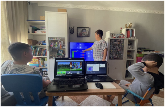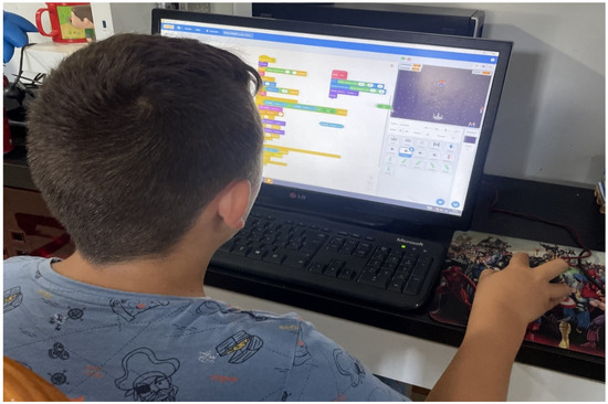 Knowledge transmission in the field of programming took place in the student’s home environment over a period of 2 months, averaging 1 to 2 h on Mondays, Wednesdays, and Fridays. Training occurred in a study room with ample lighting and no disturbances, providing a conducive space for concentration and learning. The primary facilitator of this process was the student’s father, who played the role of educator and guide during interactions with the Scratch program.