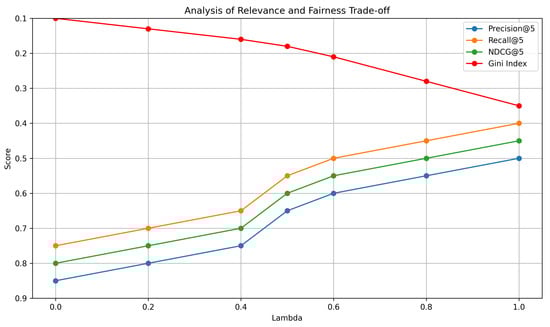5.3. Analysis of Relevance and Fairness Trade-Off