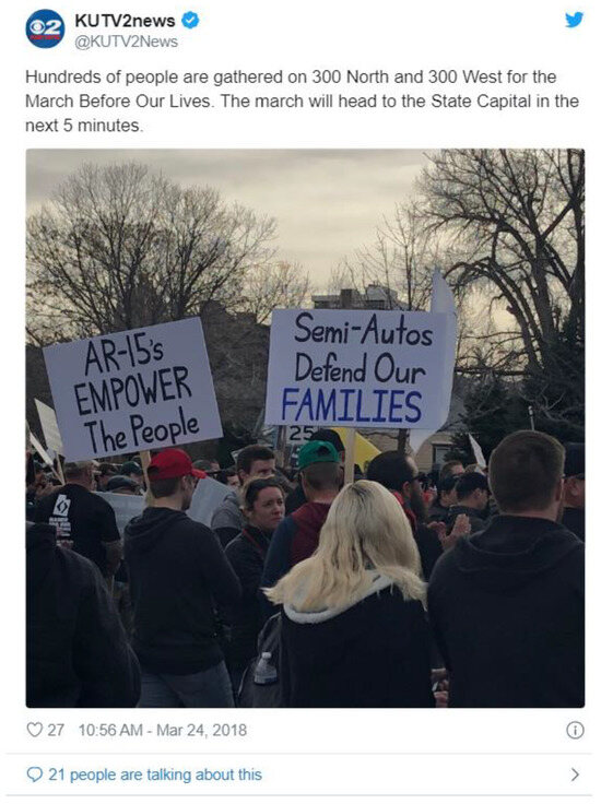 - Vera, A. While Others Marched for Their Lives, These Folks Marched for Their Guns. 24 March 2018. Available online: https://www.cnn.com/2018/03/24/us/march-for-our-lives-counter-protests-trnd/index.html (accessed on 16 June 2020).