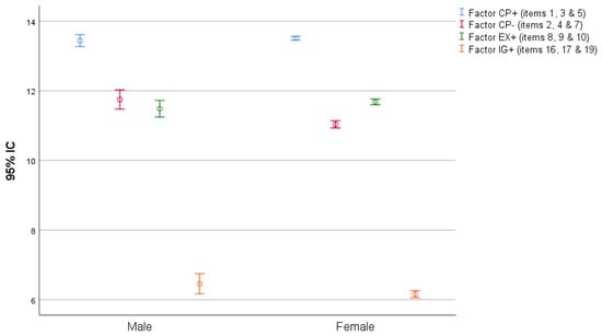 | Fator IG+ (items 16, 17 & 19) | Male | 439 | 6.46 | 0.147 | 1.983 | 0.047 |