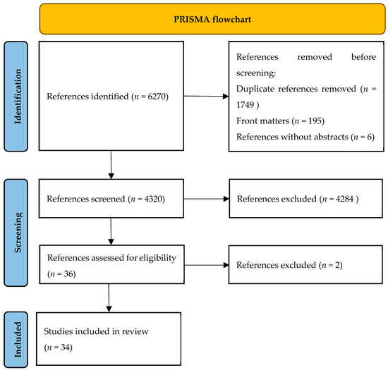 The PRISMA flowchart of the systematic review is presented in Figure 1. The literature search was performed in January 2024, and 6270 references were retrieved: 3083 from Scopus, 1612 from Web of Science, and 1575 from IEEE Xplore.