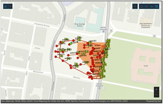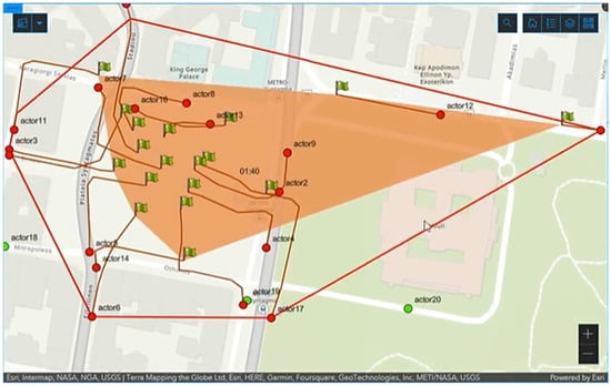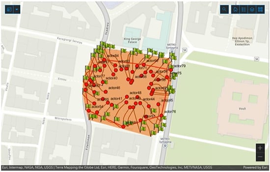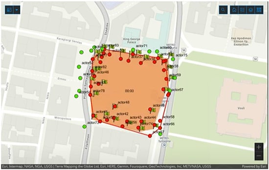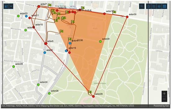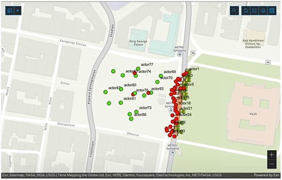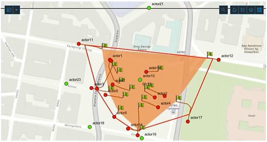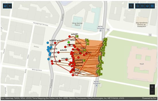 For the real-time visualization of these scenarios, an ESRI ArcGIS Operations Dashboard, as shown in Figure 5, has been created to monitor and analyze the various factors at play. The dashboard is an essential tool for researchers and decision-makers, as it provides a comprehensive view of the unfolding situations and the group dynamics involved. The map background is provided by the following list of companies: