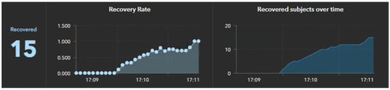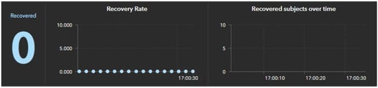 Next, in Figure 19, Figure 20, Figure 21 and Figure 22, one can see the current count of individuals categorized as stressed, calm, and recovered, enabling effective monitoring of emotional distribution within the group. Real-time charts visually represent emotional trends for each category, aiding in the identification of influencing factors and individual transitions between emotional states. Moreover, the Panic Transmission and Recovery Rate Charts offer insights into the pace of panic propagation and the recovery rate, providing valuable information about intervention efficacy and overall group resilience. Additionally, the DEI Current Value provides real-time insights into the collective emotional state, reflecting stress and anxiety levels, while The DEI Progress Diagram tracks the evolution of the emotional state over time, shedding light on its progression throughout the scenario.