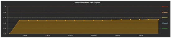 Ultimately, a comprehensive assessment of the DEI reveals that, in this specific scenario, the phenomenon rapidly reaches a DEI scale of 3, as the panic spreads to the entire crowd and no instances of recovery are observed.