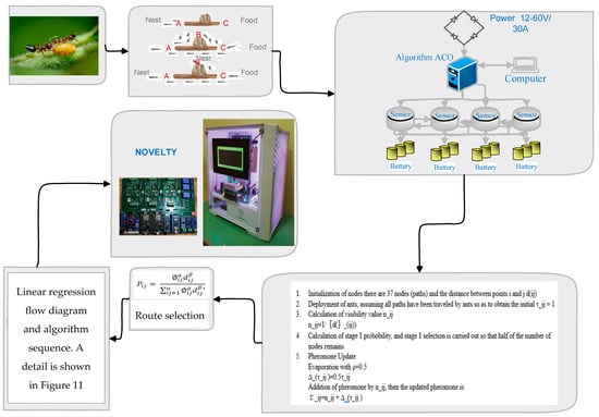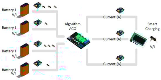A schematic diagram of the ACO algorithm with the infrastructure used for charging is presented in Figure 7.