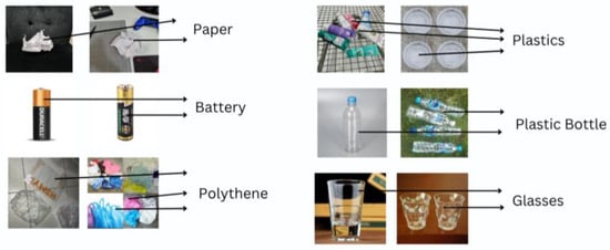 - Gill, K.S.; Anand, V.; Gupta, R. Garbage Classification Utilizing Effective Convolutional Neural Network. In Proceedings of the 2023 2nd International Conference on Vision Towards Emerging Trends in Communication and Networking Technologies (ViTECoN), Vellore, India, 5–6 May 2023; IEEE: Piscataway, NJ, USA, 2023; pp. 1–4. [Google Scholar]