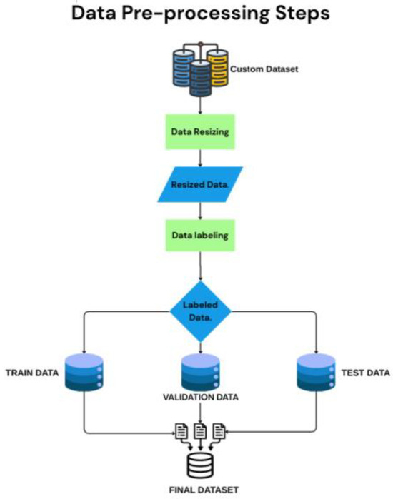 Figure 4 shows the whole sequence of pre-processing steps. After these steps were completed, the processed dataset was divided so that 75% was used for training, 15% for testing, and 15% for validation.