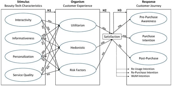 Considering the critical role of customer experience and satisfaction in forming a purchase intention [39,41,42], as witnessed from the synopsis that is Table 1, the S-O-R model is particularly suitable.