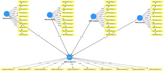 2 = 0.021). All values fall in the category of small but positive effects, as described in the international standards. The HRM_eLearning → Digital Competence path was the most important, both statistically and in interpretation [