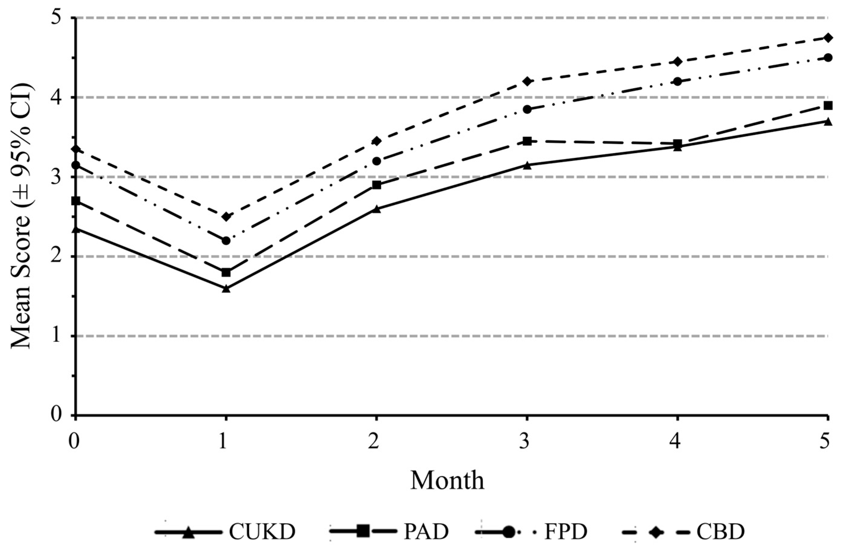 for the CUKD, PAD, FPD and CBD, respectively), and