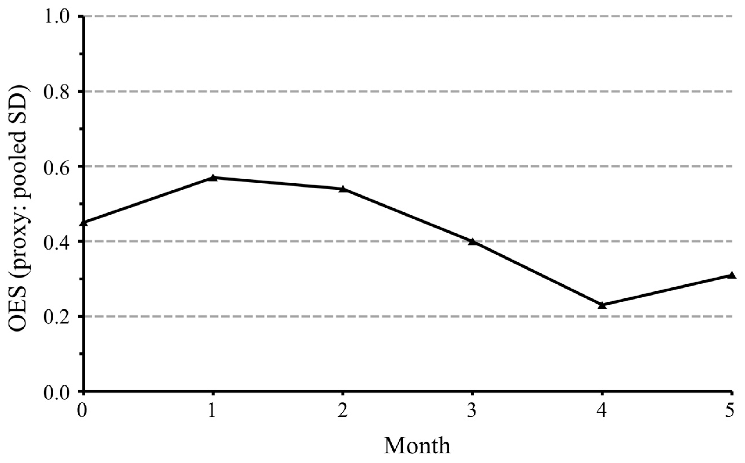 In the WCS, the OES at months 0 and 5 is quantified as follows: