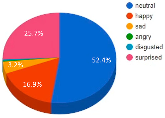 The results indicate that certain emotions have a significant correlation with the academic performances of the students who participated in this experience. In particular, joy and surprise, with correlations of 0.592 and 0.430, respectively, are linked to students who achieved good grades. This means that students experiencing positive emotions during the sessions of this experience, such as joy of learning or curiosity about new content (expressed by surprise), have more ability to achieve good grades. On the other hand, negative emotions such as anger (−0.410), disgust (−0.439), sadness (−0.273), and fear (−0.282) are negatively correlated with grades, although the magnitude of this correlation can fluctuate. These observations indicate that negative emotions affect concentration and motivation, leading to decreased academic performance. According to these findings, emotions like anger and disgust influence negatively on academic performance.