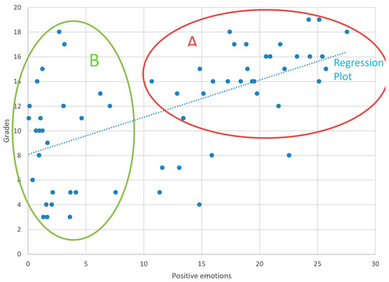 To graphically visualize the relationship between positive emotions and students’ academic performance, we plotted the data points representing the students in a plane that has the students’ performance as the first axis and their grades as the second axis.