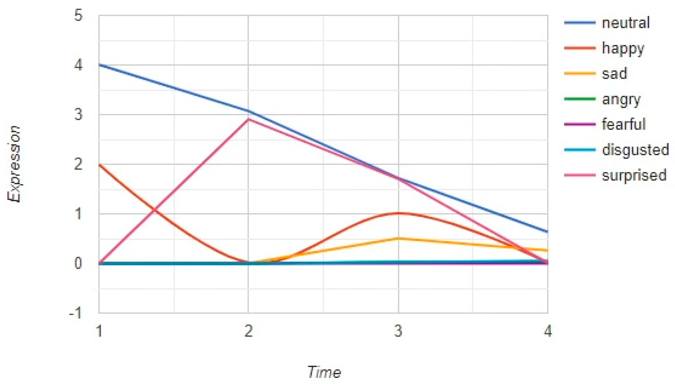 Analyzing Changes in Students’ Emotions According to Content: For the same student, it is possible to analyze whether their emotions differ across various modules. This can provide an emotional diagnosis by module, helping to address issues with the student. For example, if a student consistently feels sad or angry in certain modules but happy in others, educators can discuss the underlying reasons with the student to promote greater engagement in the less positive modules.