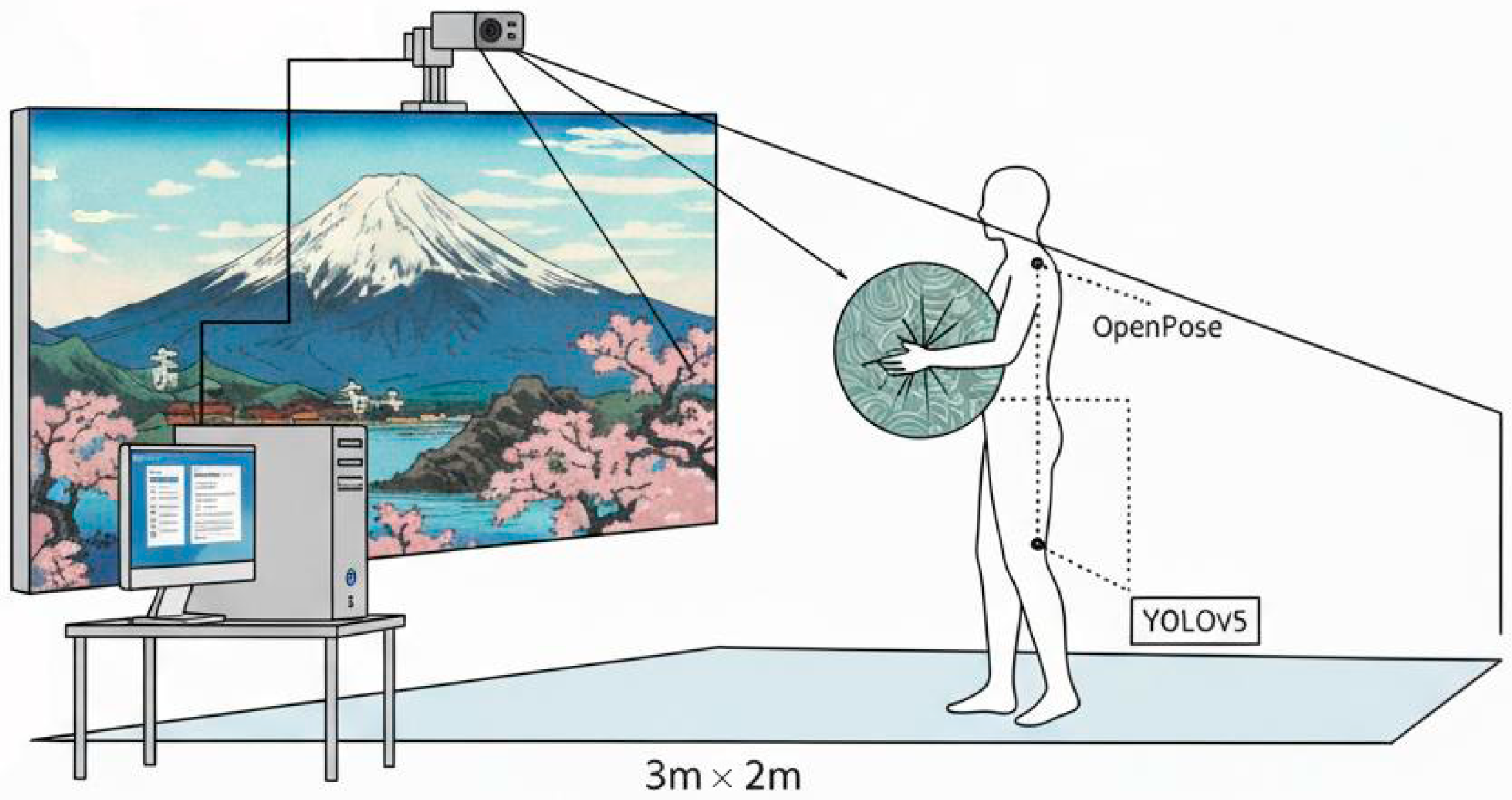 Chicago/Turabian StyleNimi, Hisa, Meizhu Lu, and Juan Carlos Chacon. 2025. "Embodied Co-Creation with Real-Time Generative AI: An Ukiyo-E Interactive Art Installation" Digital 5, no. 4: 61. https://doi.org/10.3390/digital5040061