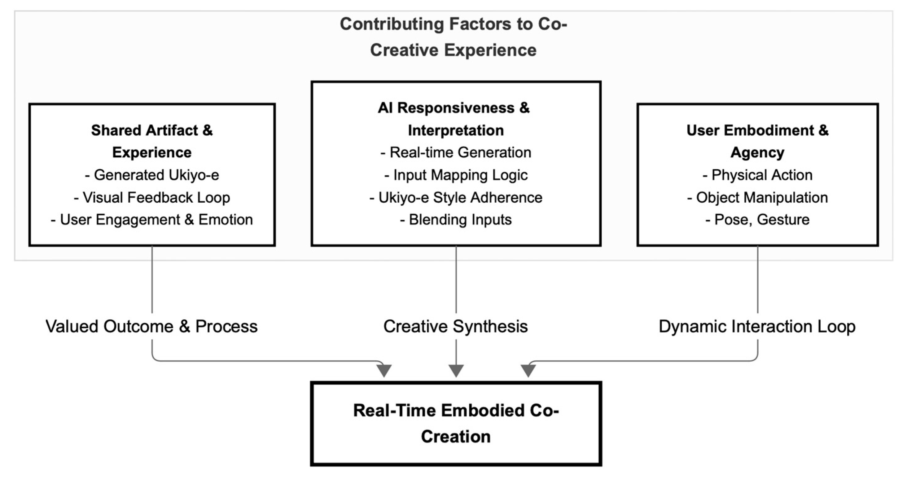 | Human–AI co-creation | Provides a framework for mixed-initiative, shared agency, and embodied co-creation. |